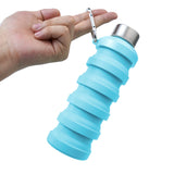 Travelmall 500ml/16.9 oz BPA-Free Collapsible Water Bottle with Stainless Steel Lid and Carabiner Clip